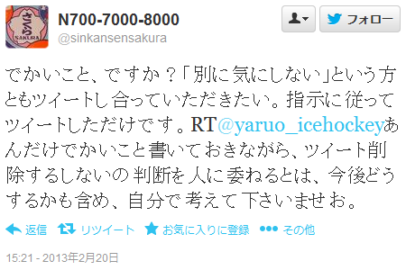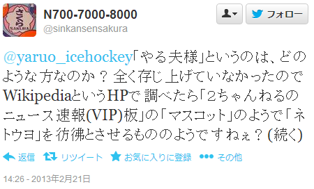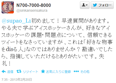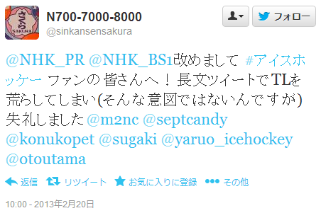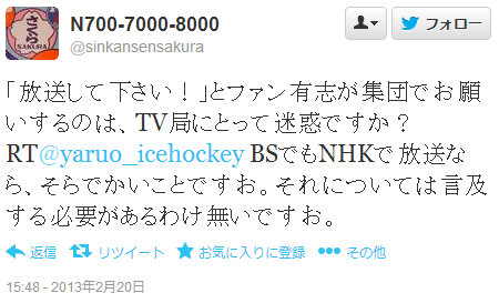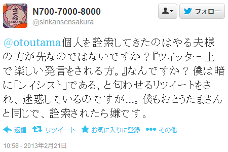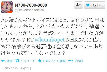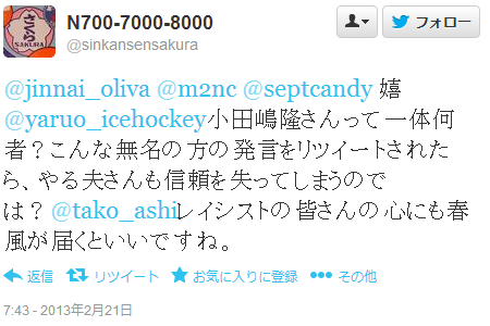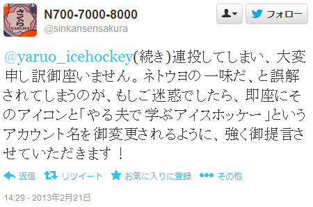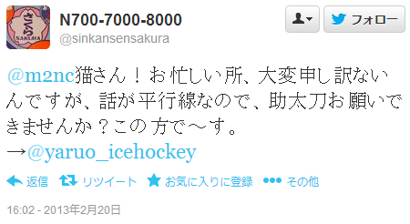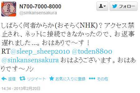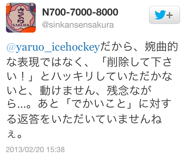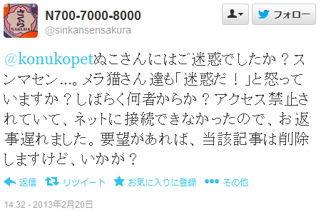 | 特定アカウント (N700-7000-8000 / @sinkansensakura) とのやり取りについて |