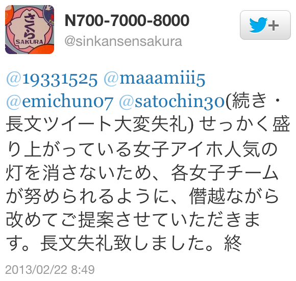 やる夫からの質問をスルーし、なぜかSEIBUプリンセスラビッツや クイーンベアーズ(の選手たち)に長文ツイート